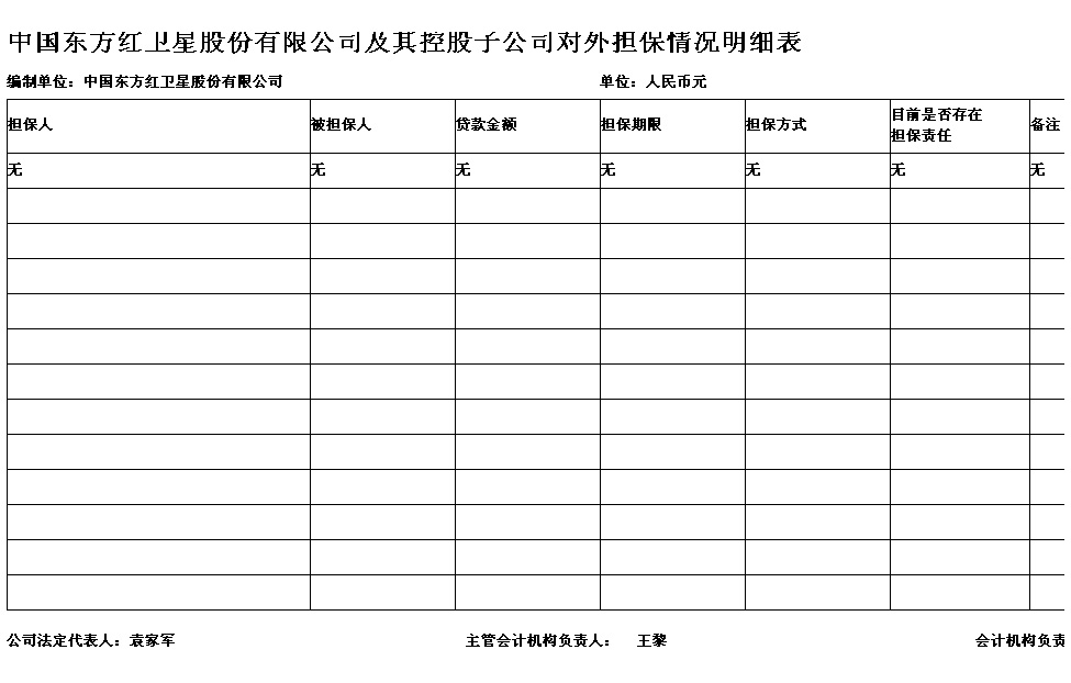 2、中國東方紅衛(wèi)星股份有限公司及其控股子公司對外擔(dān)保情況明細(xì)表